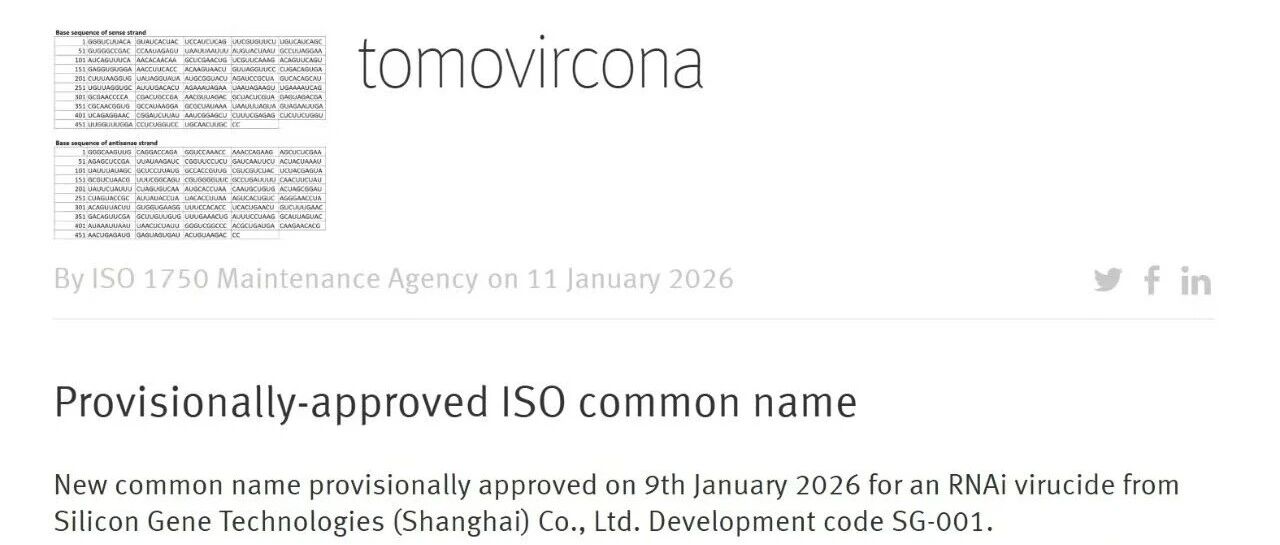 ![]() 里程碑|我国研发的全球首款防治植物病毒病的RNA农药国际通用名称Tomovircona获ISO临时批准 硅羿科技 发布时间2026/01/12 10:51:01 | - | - | - | 56 | 更多 |