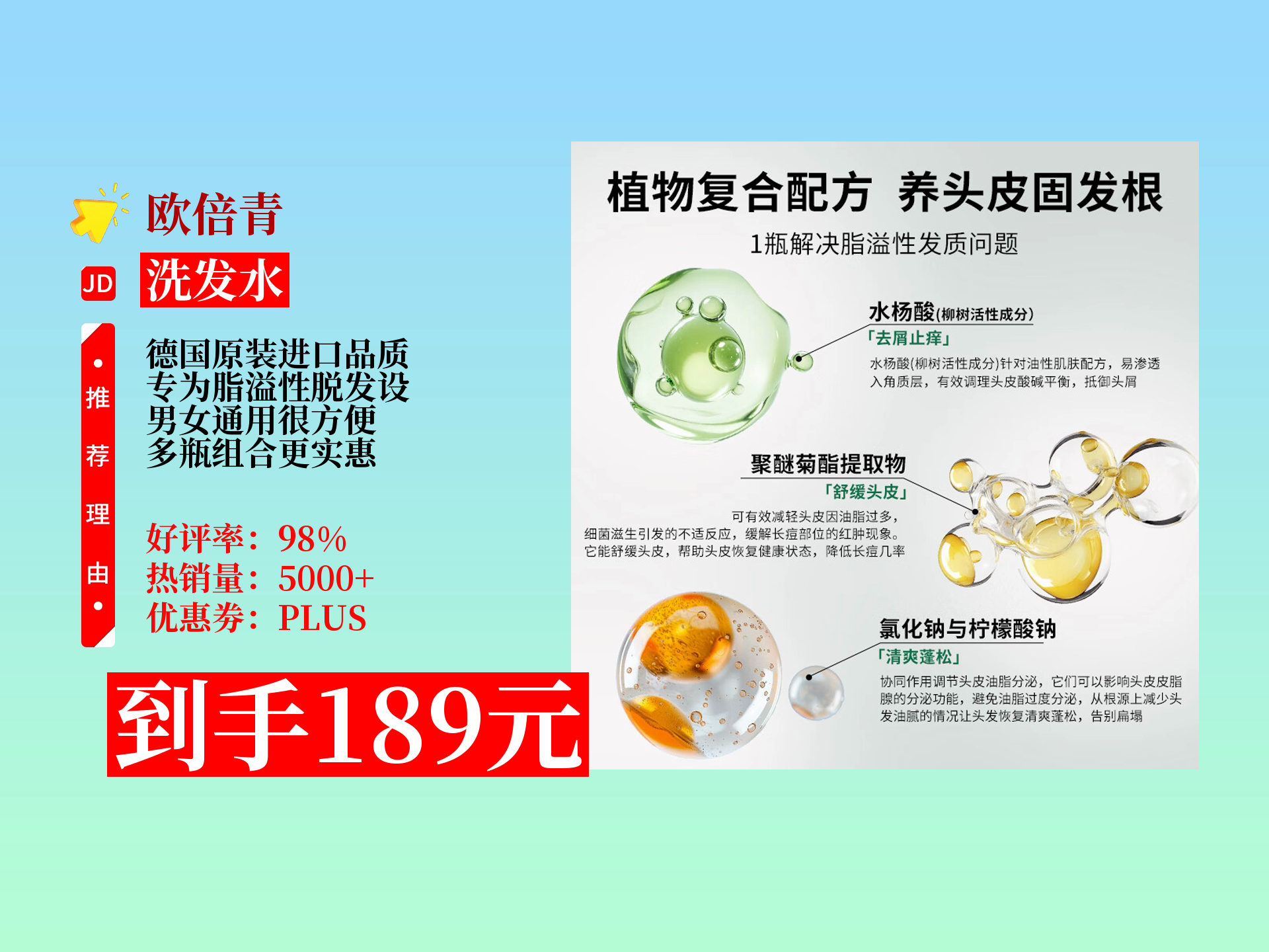 从毛囊根源解决脱发问题!!洗起来温和去屑、不会刺激头皮!!