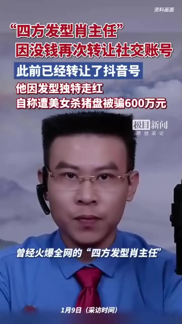 ![]() ![]() 曾火爆全网的“四方发型肖主任”再次转让社交账号,当事人:已离开法律行业快两年,改行卖珠宝玉石亏了不少钱(原创采访) 极目新闻 发布时间2026/01/09 08:53:34 | 139 | 221 | 178 | 1731 | 更多 |