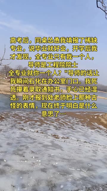 ![]() ![]() 高考后,同桌怂恿我填报了稀缺专业,说毕业就好业,开学后我才发现,全专业只有我一个人,导师是工程院院士