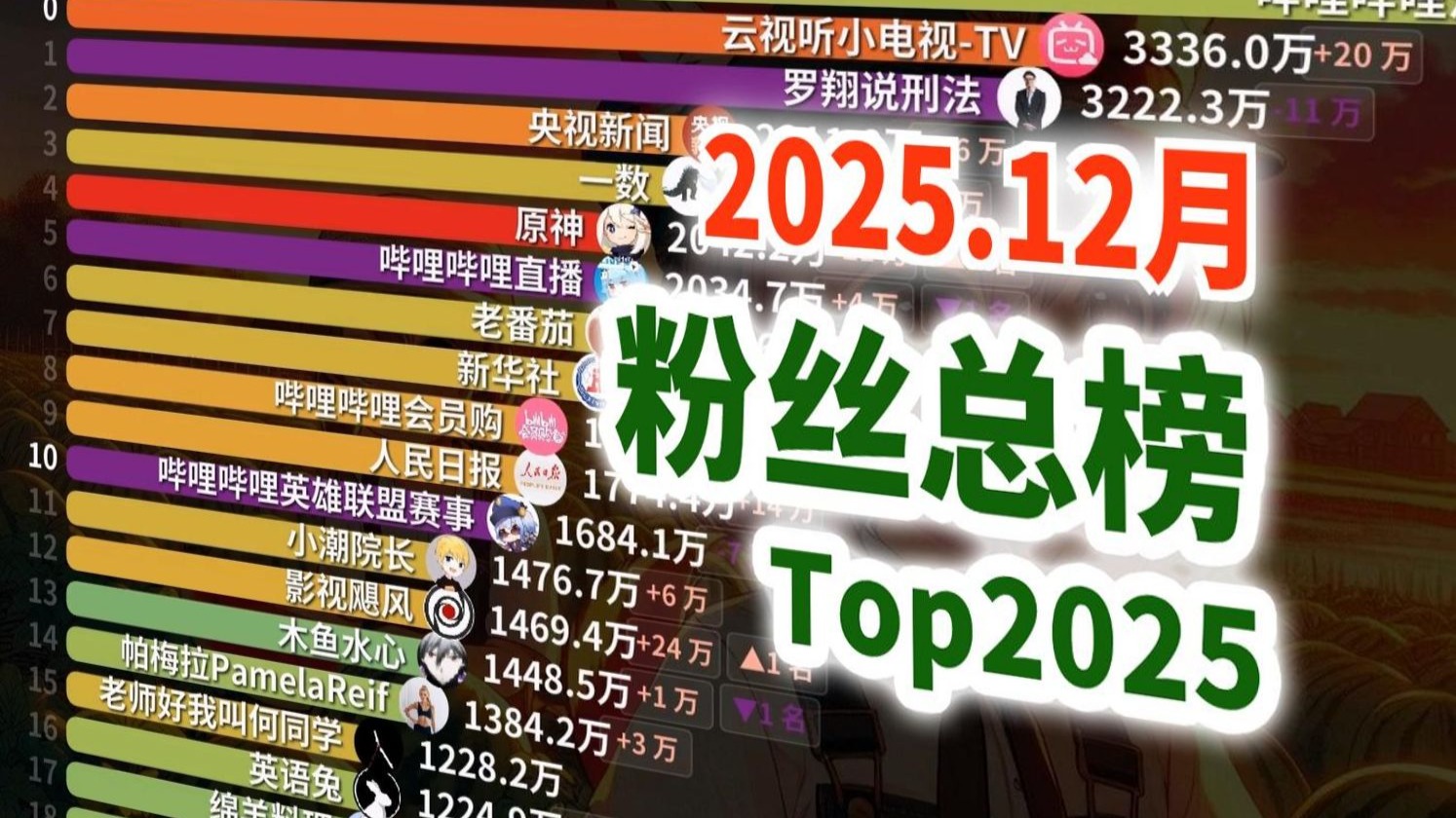 ![]() ![]() B站粉丝最多UP排行12月榜【粉丝总榜#89】 狸子LePtC 发布时间2026/01/01 09:09:35 | 89 | 27 | 253 | 790 | 更多 |