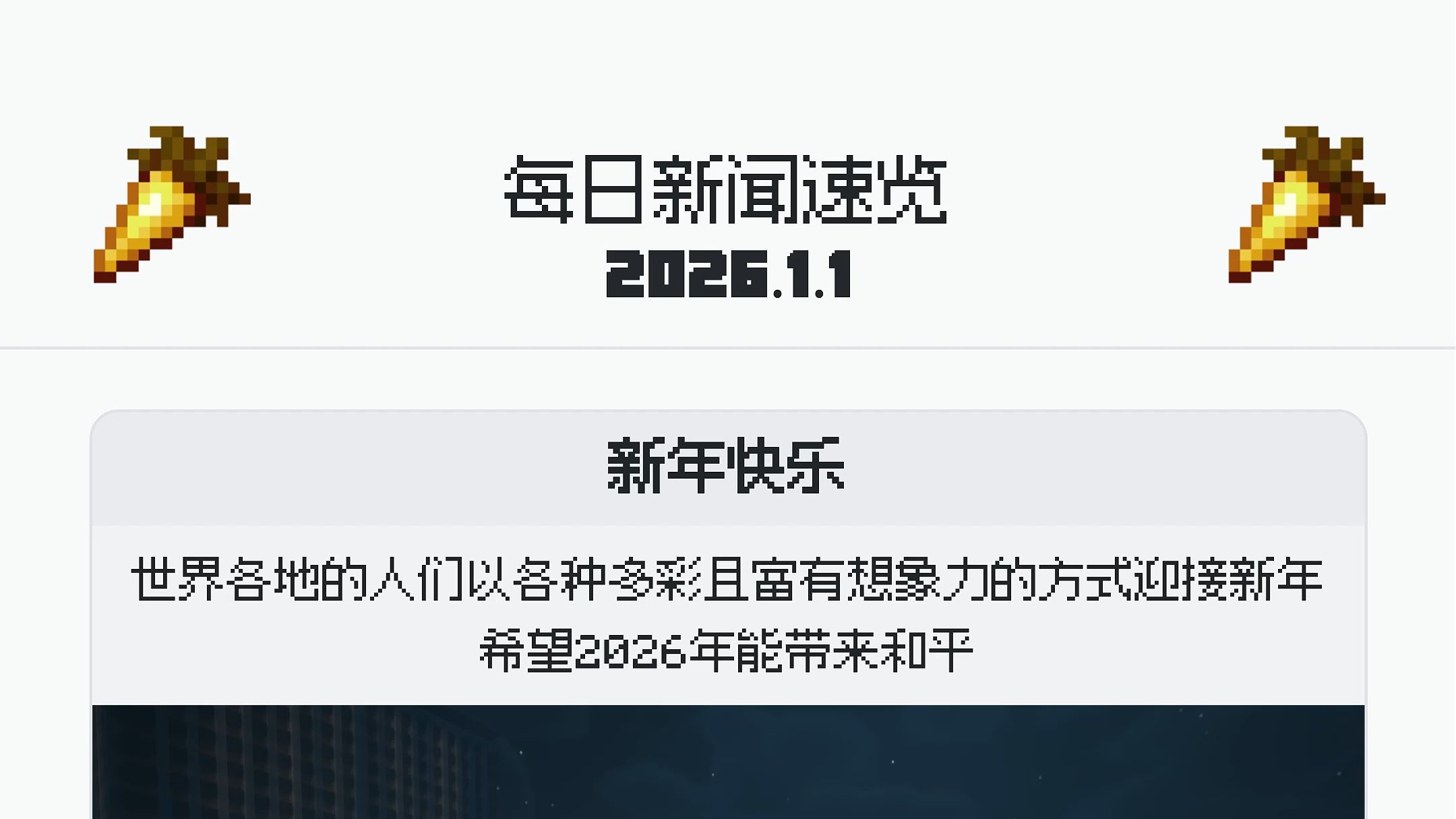 ![]() ![]() Minecraft每日新闻速览 每日萝卜 发布时间2026/01/01 09:59:19 | 141 | 53 | 698 | 1w | 更多 |