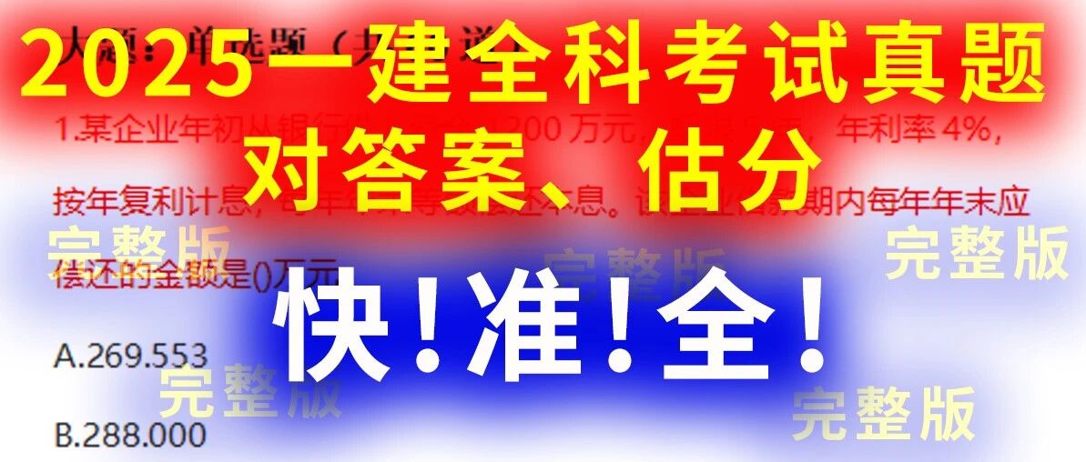 ![]() 【全科答案~快准全!】2025一建真题答案解析已出,立刻对答案、估分! 兔博士说建工 发布时间2025/09/21 10:11:04 | - | - | - | 12 |