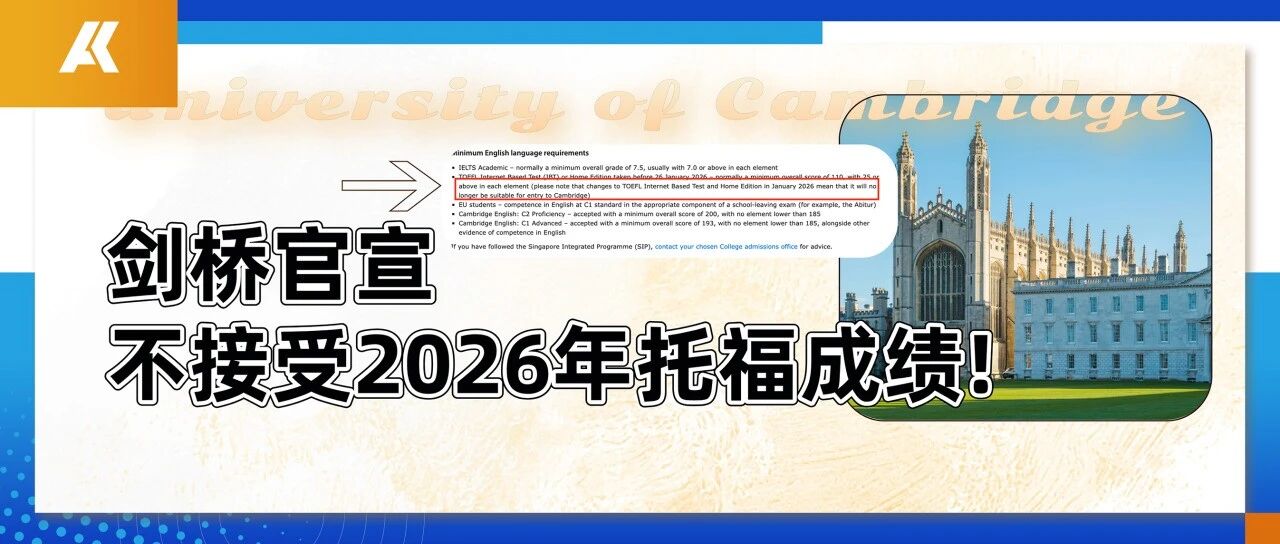 ![]() 剑桥突发新政!26Fall申请者注意:明年新托福成绩不被认可! 爱康优申留学 发布时间2025/09/16 10:14:39 | - | - | - | 10 |