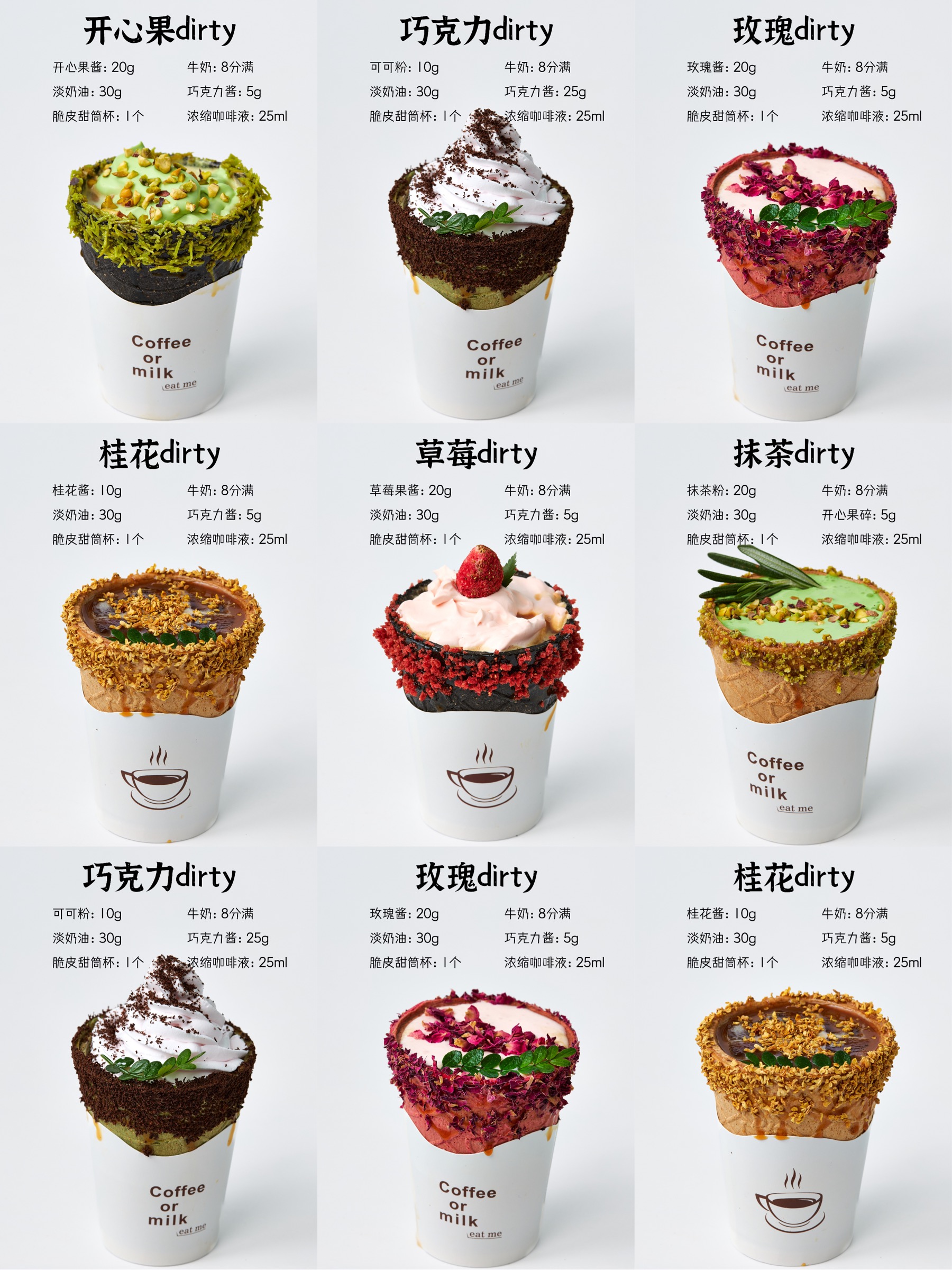 ☕①意式咖啡(美式、卡布奇诺、拿铁、⻛味拿铁、燕麦拿铁、生椰拿铁、冰博客拿铁、澳⽩、Dirty、西班牙拿铁、摩卡、等咖啡店常见咖啡类目制作、特调咖啡饮品制作学习)