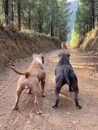 棕色队友尾巴狂甩,黑色队员紧盯前方🤔