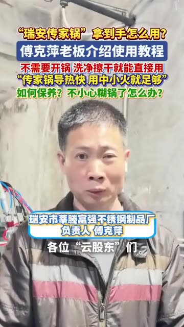 ![]() ![]() “瑞安传家锅”拿到手之后,需要开锅吗,如何保养,糊锅了怎么办?老板傅克萍介绍使用教程!(瑞安融媒,浙江之声记者李晓华)#瑞安传家锅 #傅克萍 ![]() 不锈钢锅具 发布时间2025/12/30 02:36:53 | 368 | 1104 | 7715 | 3w | 更多 |