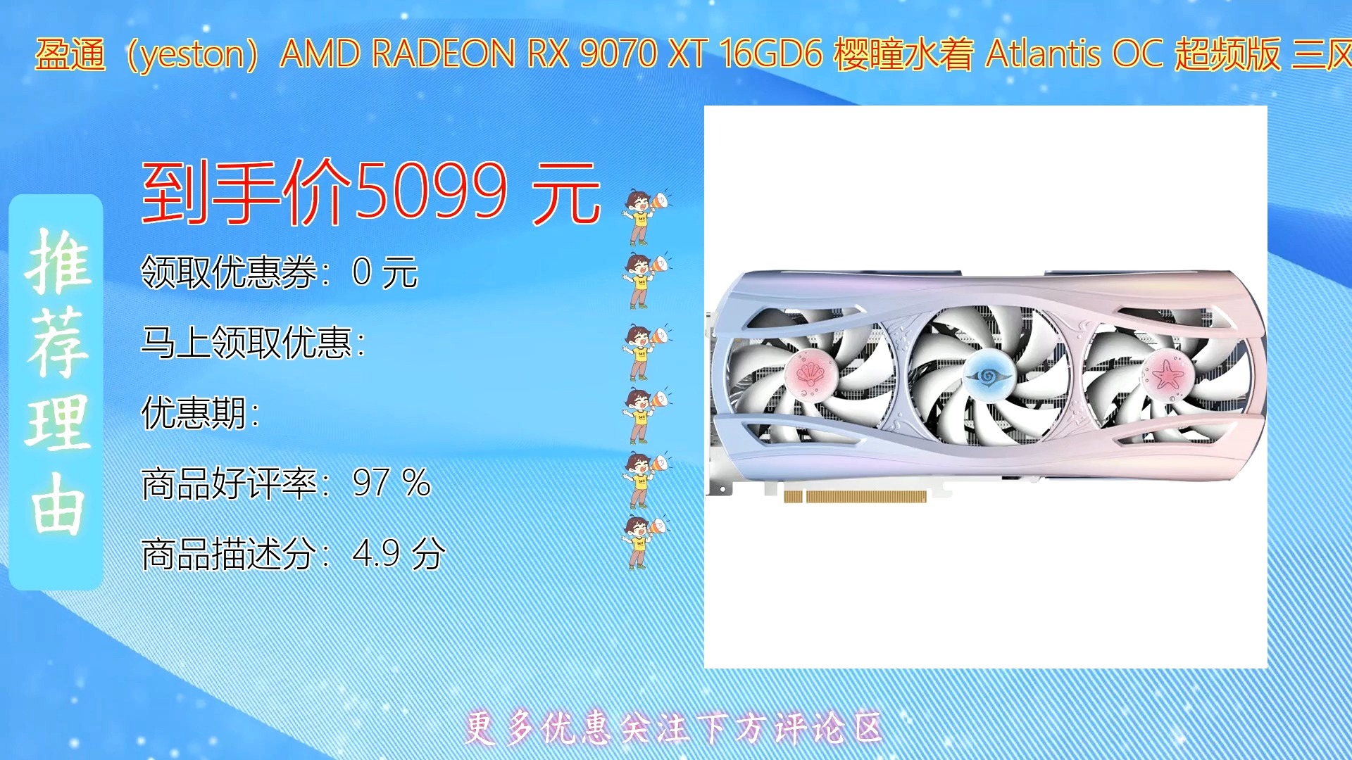 ![]() ![]() 盈通Yeston AMD Radeon RX 9070 XT 16G D6樱瞳水韵版显卡采用先进制程工艺与高效散热设计 动态光影下绽放独特美学魅力 性能流畅驾驭 白桦林好物优选 发布时间2025/09/25 00:47:23 | 1 | 0 | 0 | 0 |