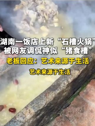 ![]() ![]() 近日,湖南,一饭店上新“石槽火锅”,被网友调侃神似“猪食槽”。老板回应:艺术来源于生活(来源:直播日照) 新畿辅 发布时间2026/01/09 22:19:00 | 124 | 525 | 48 | 439 | 更多 |