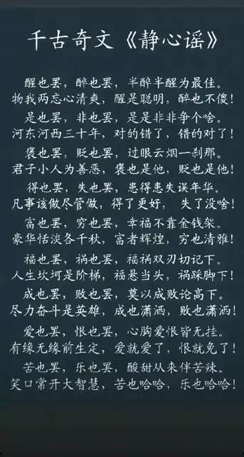 ![]() ![]() 千古奇文《静心谣》,悟透人生真滋味 #心灵鸡汤 #人生感悟 ![]() 沐铮 发布时间2026/01/03 14:02:49 | 224 | 4581 | 8533 | 8951 | 更多 |
