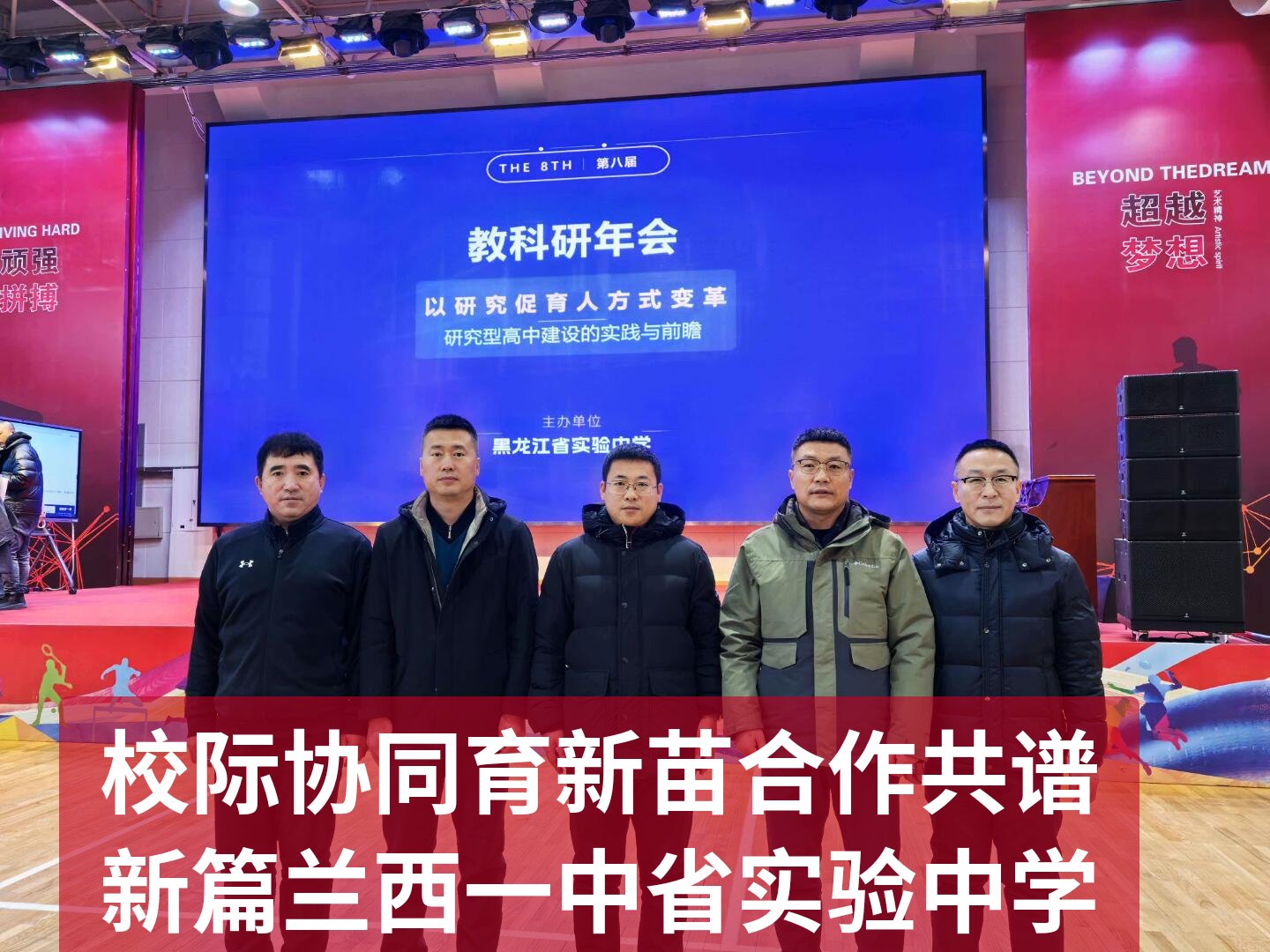 2026年1月15日,兰西一中校长姜德雨带领副校长李长双、张岚昱及政教处主任常向阳、教务处主任付忠臣,赴合作办学伙伴单位黑龙江省实验中学,共同参与以“以研究促育人方式变革——研究型高中建设的实践与前瞻”为主题的第八届教科研年会。作为两校深化合作办学的重要举措,此次交流旨在依托黑龙江省实验中学的优质教育资源,推动兰西一中教育教学体系全面升级,彰显“资源共享、优势互补、协同发展”的合作初心。