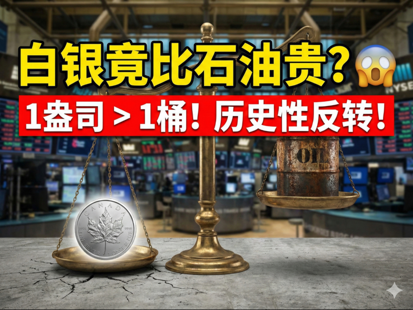 ![]() ![]() 当白银比石油更值钱:旧世界定价体系正在崩 当市场的目光被科技股和人工智能热潮牢牢吸引时,真正悄然改写规则的,却是贵金属市场。一个罕见而具有象征意义的现象正在发生:一盎司白银的价格,已经超过了一桶原油。这不仅是价格上的巧合,更是全球大宗商品结构性变化的直接体现。