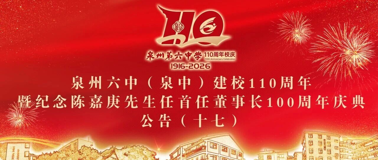 ![]() 六中人,同窗喊你来组队了(12)——泉州六中(泉中)建校110周年暨纪念陈嘉庚先生任首届董事长100周年庆典公告(十七) 泉州市第六中学 发布时间2026/01/07 12:16:47 | - | - | - | 93 | 更多 |