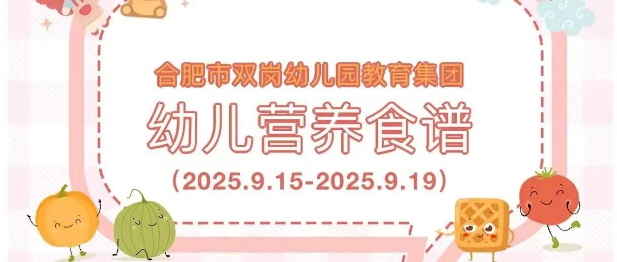 ![]() 【双幼•美食有约】集团:幼儿营养食谱(2025.9.15-2025.9.19) 合肥市双岗幼儿园教育集团 发布时间2025/09/13 02:13:31 | - | - | - | 11 |