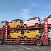 大板车专业装载,每辆车都固定得稳稳的