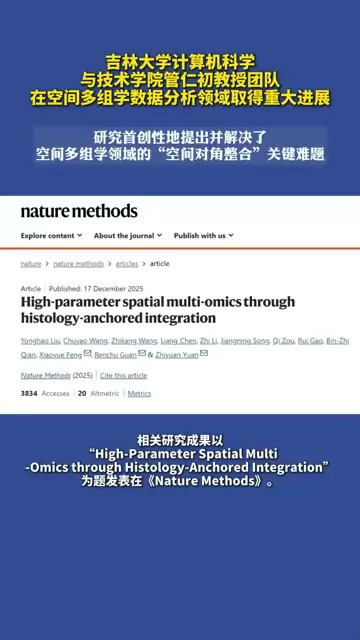 ![]() ![]() 吉林大学计算机科学与技术学院管仁初教授团队在空间多组学数据分析领域取得重大进展 吉林大学 发布时间2026/01/18 07:30:00 | 23 | 58 | 29 | 383 | 更多 |