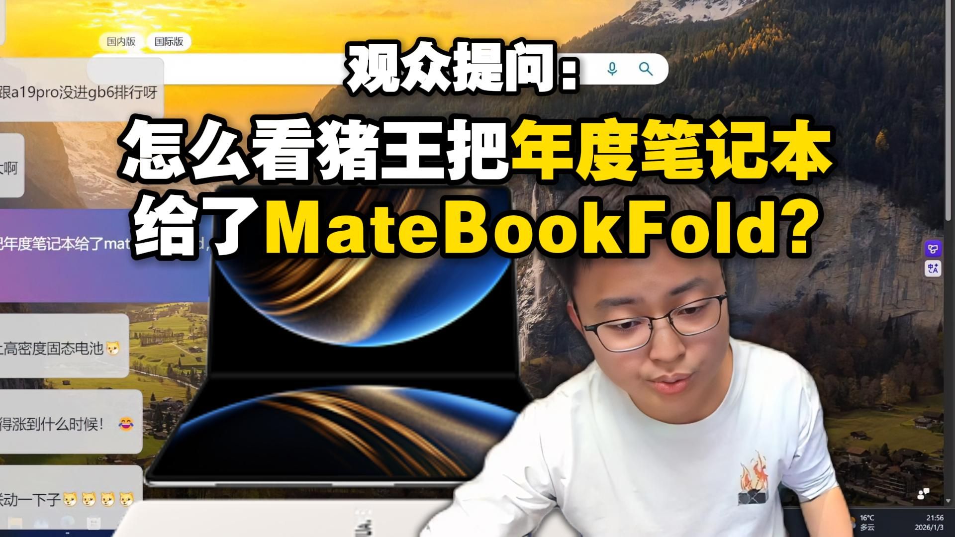 ![]() ![]() 【极客湾】观众:怎么看猪王把年度笔记本给了Matebook fold?有人说这玩意没生产力算不了笔记本的说法 彼咔丘 发布时间2026/01/03 14:18:07 | 682 | 29 | 168 | 1169 | 更多 |
