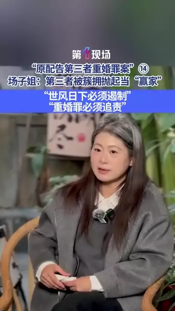 ![]() ![]() “原配告第三者重婚罪案”,第一现场专访“场子姐”:第三者竟被簇拥抛起当“赢家”,“世风日下必须遏制,重婚罪必须追责” #场子姐 #婚姻家庭 ![]() 第一现场 发布时间2026/01/01 04:56:51 | 7146 | 1128 | 1950 | 7w | 更多 |