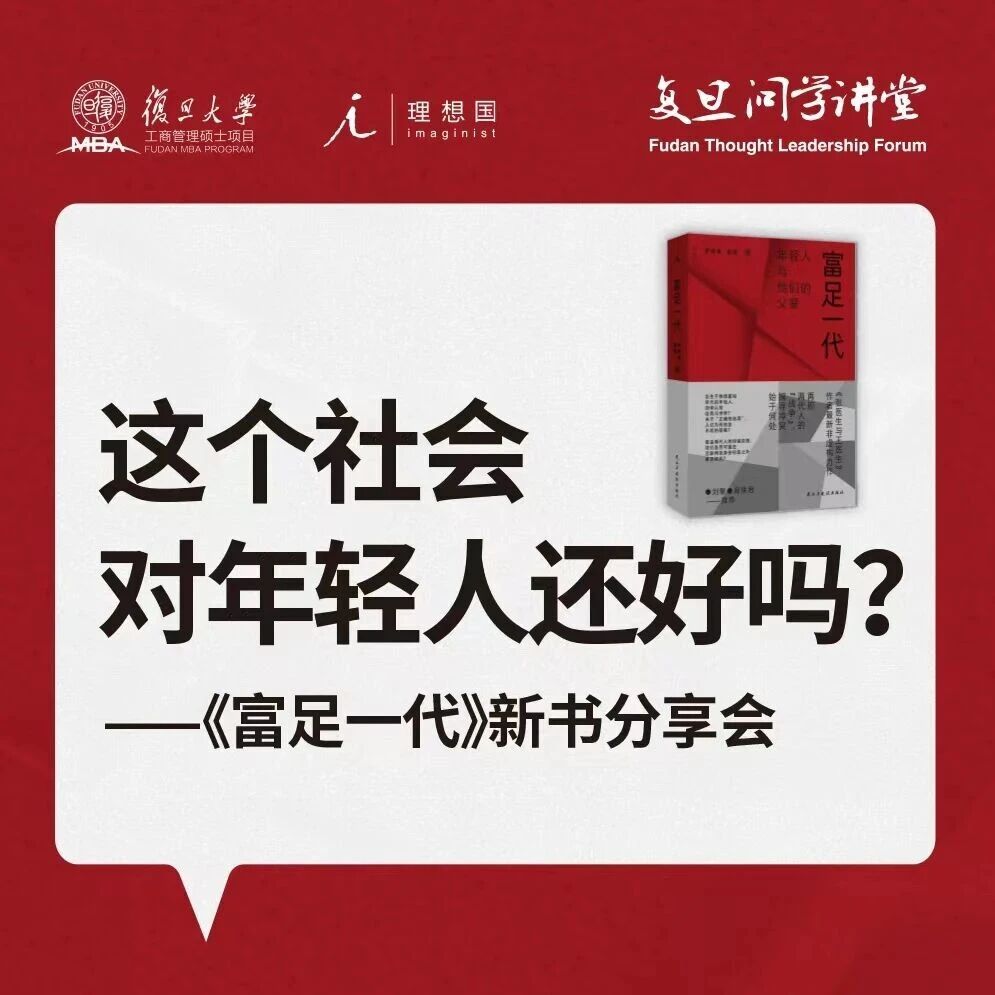 ![]() 这个社会对年轻人还好吗?《富足一代》新书分享会 | 复旦问学讲堂 复旦管院 发布时间2026/01/13 04:50:33 | - | - | - | 22 | 更多 |