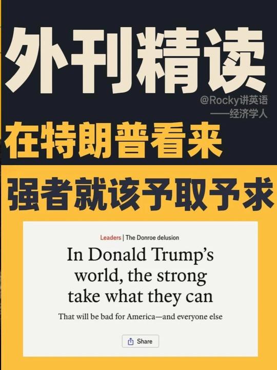 ![]() ![]() 抓了马杜罗,然后呢?| 经济学人 | 外刊精读系列 #外刊精读 #外刊 #英语 #特朗普 Rocky讲英语 发布时间2026/01/23 07:06:23 | 2 | 1 | 4 | 13 | 更多 |