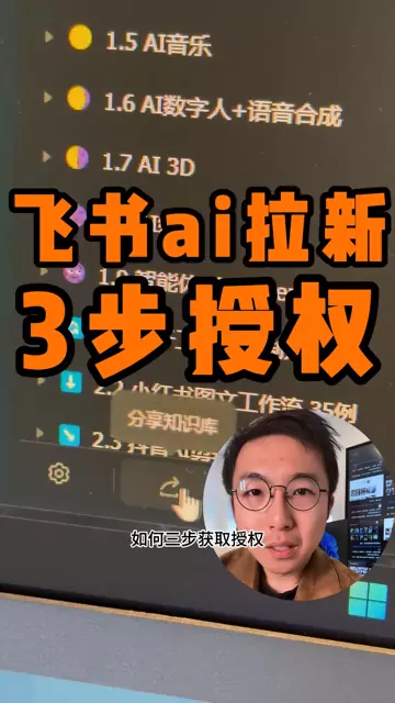 ![]() ![]() 飞书知识库拉新计划3步授权全流程,粉丝群里领授权文档 #飞书AI #官方授权 #百度网盘 #拉新赚钱 ![]() 大黄AI黑科技 发布时间2025/12/28 10:53:11 | 19 | 84 | 387 | 591 | 更多 |