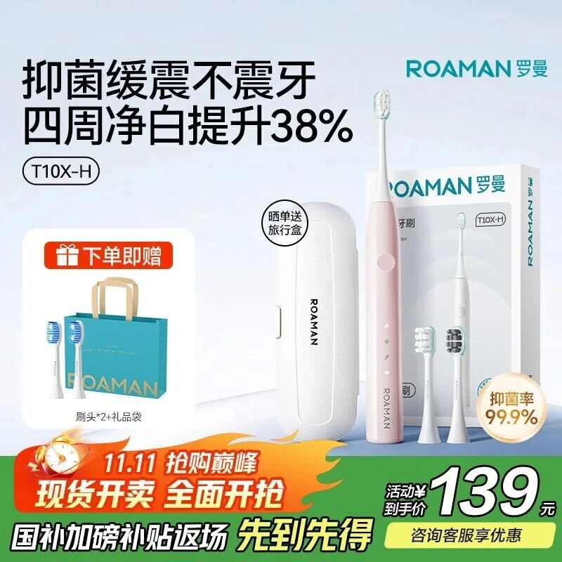![]() ![]() 【8折】罗曼(ROAMAN)小熊电动牙刷学生女男士专用成人声波375天续航缓震软毛刷头生日圣诞新年礼物小果刷T10X-H小米白