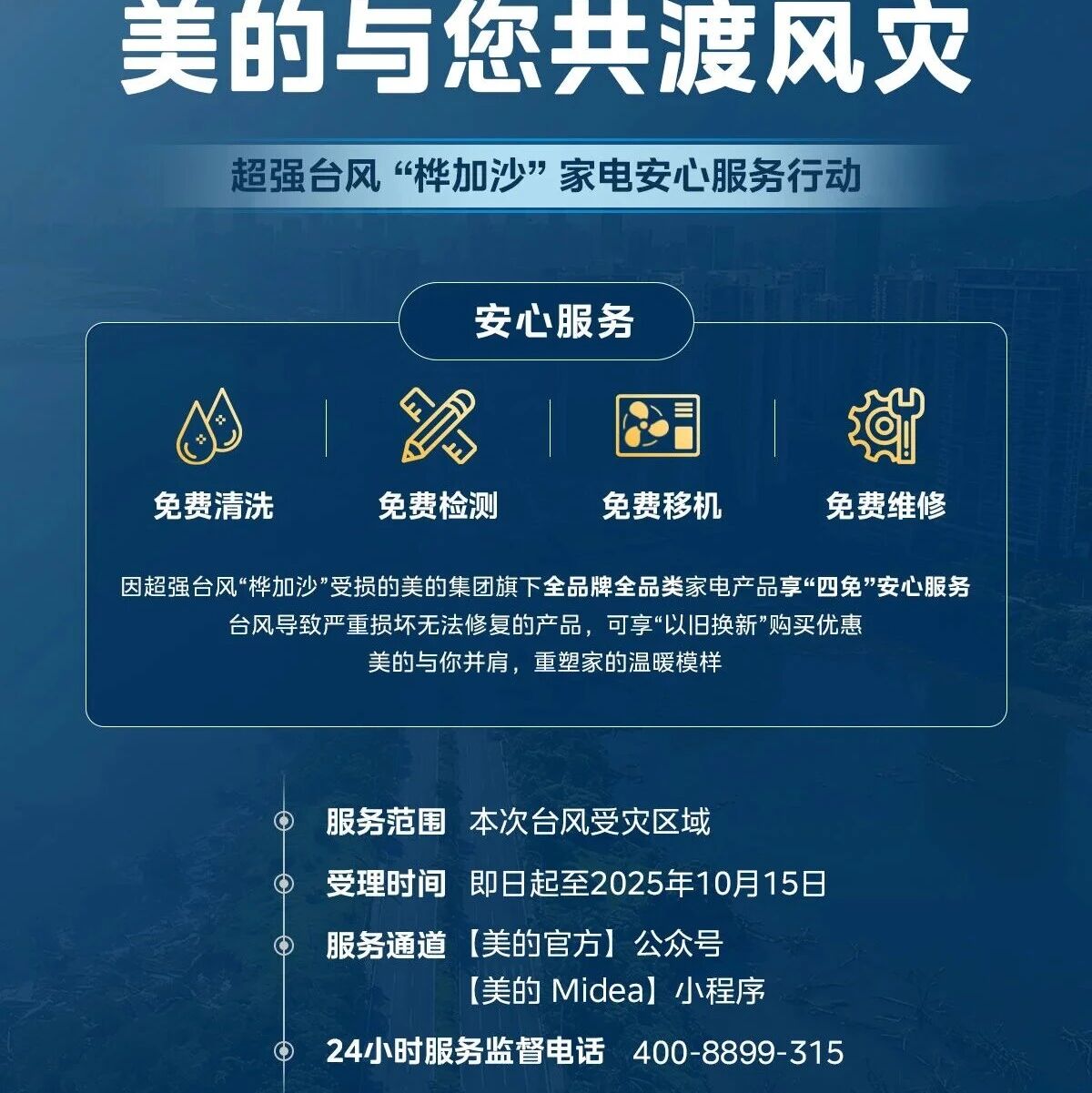![]() 应对台风“桦加沙”,美的“四免”服务暖心上线! | 44 | - | - | 5070 |