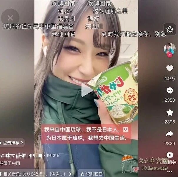 ![]() 日本女生在抖音上莫名被变成“希望回归的琉球女孩” 本人回应:可怕,不安 2ch中文网 发布时间2025/12/26 15:47:21 | 23 | - | - | 169 | 更多 |