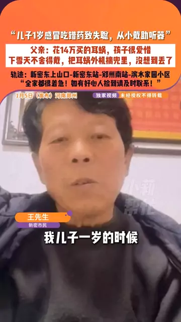 ![]() ![]() 1月5日(发布)河南郑州,“儿子1岁感冒吃错药致失聪,从小戴助听器”父亲:花14万买的耳蜗,孩子很爱惜,下雪天不舍得戴,把耳蜗外机揣兜里,没想到丢了,轨迹:新密东上山口-新密东站-郑州南站-滨水家园小区“全家都很着急!如有好心人捡到请及时联系!” #不一样的中国节气 #中国节气小寒篇 #二十四节气让生活更美好 ![]() 河南民生频道小莉帮忙 发布时间2026/01/05 11:31:05 | 11 | 12 | 22 | 312 | 更多 |