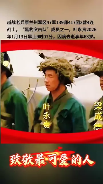 ![]() ![]() 越战老兵叶永贵于1963年出生在甘肃武威,1984年10月,他参军入伍,1985年12月赴云南前线作战,1986年4月至7月在老山进行防御作战。1987年1月7日,叶永贵参加了著名的"黑豹突击作战行动",作为战勤队队员,他表现突出,荣立二等功。在此次行动中,他一人背下了20多位烈士和伤员。1987年10月,叶永贵退役,被分配到甘肃省武威市黄羊镇第二拖拉机配件厂工作。2006年,因工厂倒闭,他下岗失业,之后靠打零工维持生计。2024年3月,叶永贵积劳成疾,被诊断出患有恶性肿瘤,胃癌,手术后生活不能自理,需要长期药物治疗,仅靠2000多元的退休金难以维持生计。2026年1月13日早上9点07分,叶永贵因病逝世,享年63岁。 #致敬最可爱的人 #自卫还击战 ![]() 旁观者 发布时间2026/01/13 16:07:16 | 403 | 23 | 76 | 2196 | 更多 |