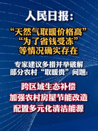 ![]() ![]() 1月19日,《人民日报》第07版发表文章《读者网友反映,一些北方地区“煤改气”后,天然气费用高——多措并举破解部分农村“取暖贵”问题》。近来,我国北方一些地区农村“煤改气”后,有读者网友反映,用气价格高,导致出现有的村民“取不起暖”“为了省钱宁可受冻”等现象。对此,专家建议,可以探索跨区域生态补偿、加强农村房屋节能改造和配置多元化清洁能源等举措破解部分农村“取暖贵”问题。 逐浪新闻 发布时间2026/01/19 04:03:49 | 6691 | 447 | 1814 | 1.9w | 更多 |