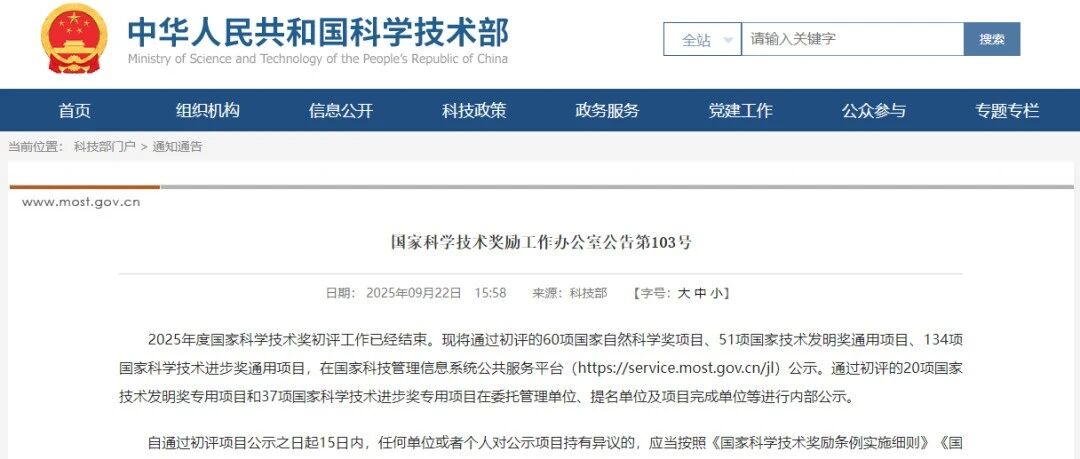 ![]() 刚刚!302项通过2025年度国家科学技术奖初评公示 工程信息Net 发布时间2025/09/22 10:22:40 | - | - | - | 16 |