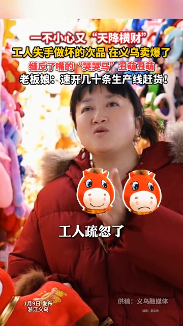 ![]() ![]() #义乌春晚 #义乌哭哭马意外走红卖爆单 老板娘:手机没办法开了静音模式,都在问哭哭马……(记者:杨懿星 供稿:义乌融媒体)#你好义乌#长三角生活派对#2026径山培福民俗系列活动 美丽浙江 发布时间2026/01/11 06:22:17 | 2638 | 3.7w | 7594 | 9.6w | 更多 |