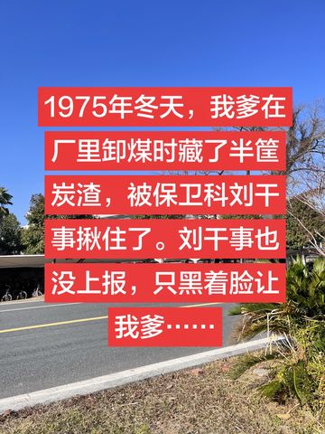 ![]() ![]() 1975年冬天,我爹在厂里卸煤时藏了半筐炭渣,被保卫科刘干事揪住了。那时候家里六口人挤两间平房,冬天全靠一个小煤炉取暖,买不起整煤,只能捡些碎渣对付。
