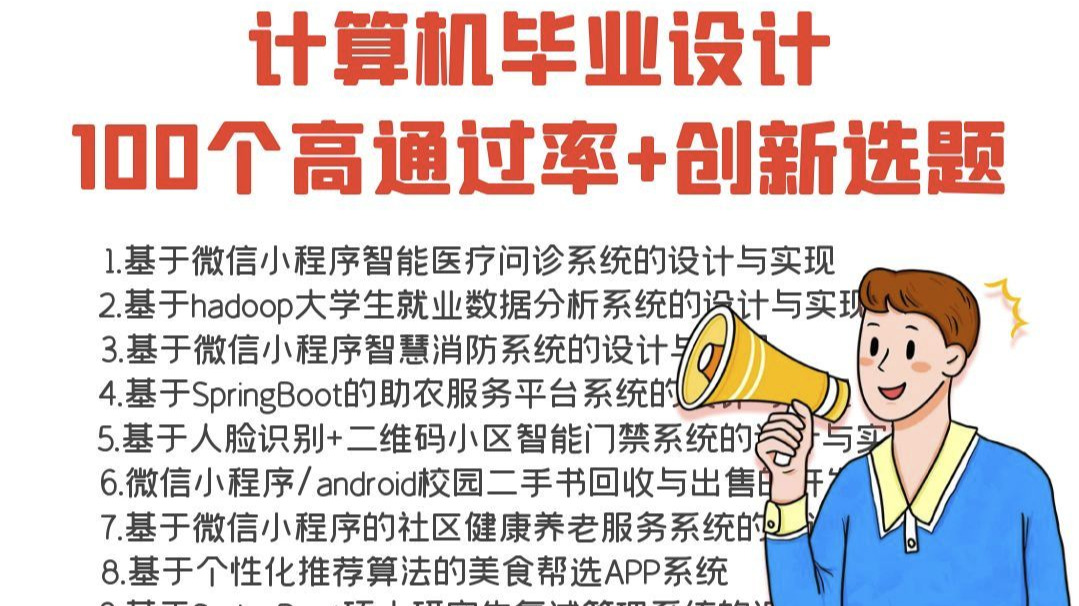 ![]() ![]() 2026年计算机毕业设计选题100个,毕业设计高通过率+创新点指导 毕业设计码哥 发布时间2025/09/11 06:38:31 | 1 | 1 | 71 | 157 |