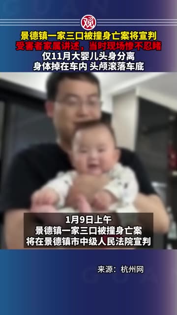 ![]() ![]() 景德镇一家三口被撞身亡案将宣判,受害者家属讲述,当时现场惨不忍睹,仅11月大婴儿头身分离,身体掉在车内头颅滚落车底 ![]() 观察者网 发布时间2026/01/08 14:03:17 | 1.8w | 1w | 1.4w | 16.5w | 更多 |