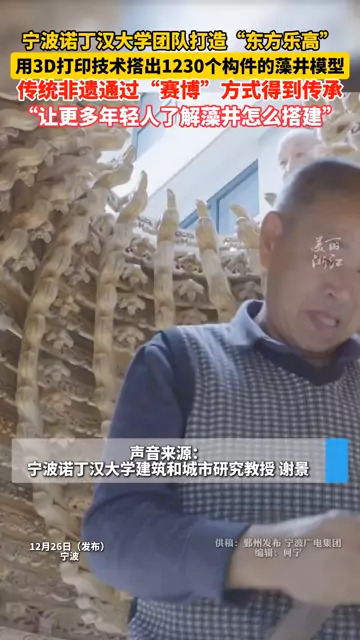![]() ![]() #宁波诺丁汉大学团队把传统藻井打造成东方乐高 用3D打印技术做出1230个构件,网友:这比乐高好玩多了,上链接!(供稿:鄞州发布 宁波广电集团) 美丽浙江 发布时间2025/12/29 15:41:58 | 13 | 8 | 43 | 434 | 更多 |