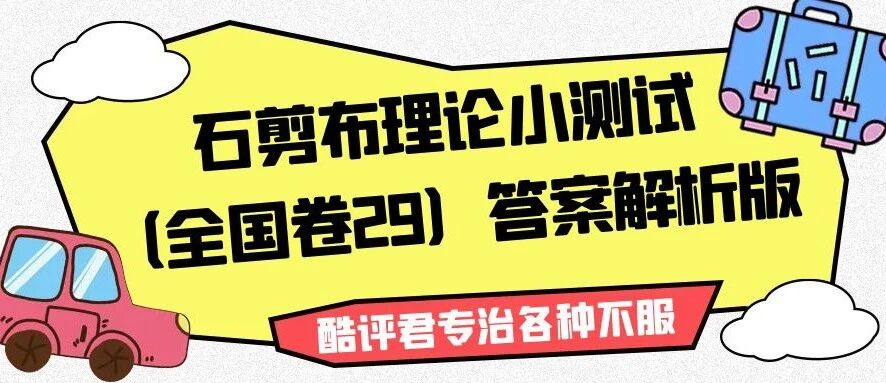 ![]() 石剪布理论小测试(全国卷29)答案解析版 酷评君专治各种不服 发布时间2025/09/03 07:30:47 | 5 | - | - | 24 |
