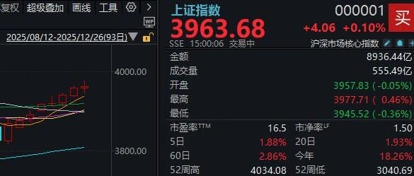 目前从技术面看,多方气势正盛,8连阳之后仍有9连阳的可能,最后三天如果收盘能站上4000点大关,那意义不一样,预示元旦后突破新高概率也大了,春季行情或一触即发。