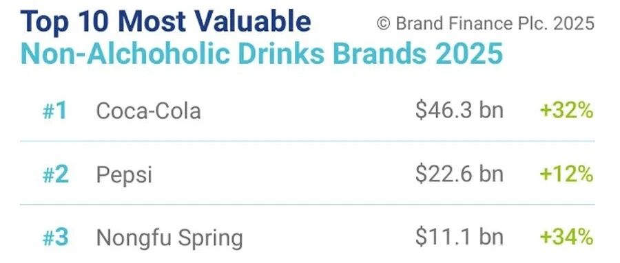 ![]() 2025全球软饮料品牌价值50强榜单,可口可乐、百事可乐、农夫山泉名列前三,东鹏进入十强 知消 发布时间2025/09/04 04:06:22 | - | - | - | 3 |