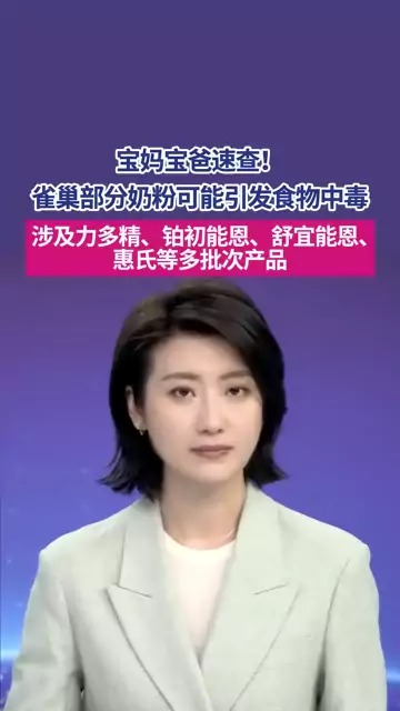 ![]() ![]() 宝妈宝爸速查!雀巢部分奶粉可能引发食物中毒被召回,涉及力多精、铂初能恩、舒宜能恩、惠氏等多批次产品。雀巢中国回应:尚未收到不适报告。 #雀巢 #雀巢奶粉 #食物中毒 ![]() 第一现场 发布时间2026/01/08 08:07:19 | 1602 | 3580 | 1729 | 5573 | 更多 |