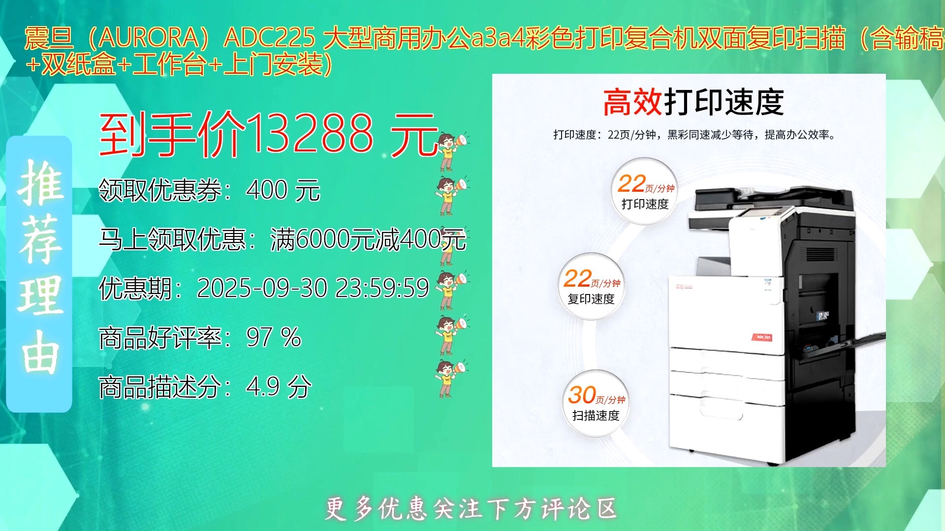![]() ![]() 震旦AURORA ADC225大型商用办公彩色复合机支持A3A4双幅面高速打印复印扫描配备自动输稿器与双纸盒高效稳定助力企业提升文档处理效率 白桦林好物优选 发布时间2025/09/24 09:27:37 | 1 | 0 | 0 | 0 |
