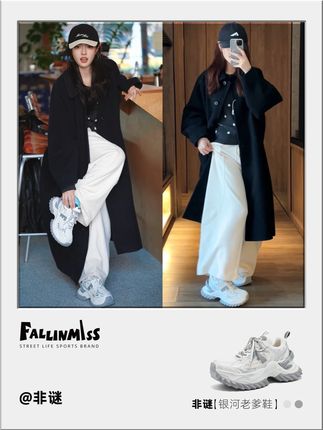 黑色大衣➕白色休闲裤➕银河老爹鞋👟