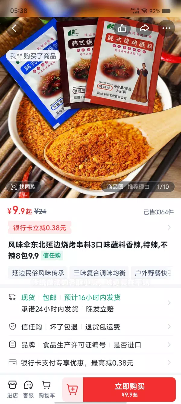 ![]() ![]() 风味伞延边风味韩式烧烤料调味料多种口味烤肉蘸料#韩式烧烤料 #多种口味 #烤肉蘸料 #延边风味 #美食调料 快乐干饭包 发布时间2025/12/20 03:23:25 | 0 | 51 | 0 | 10 | 更多 |