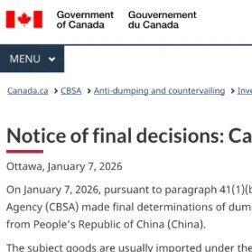 ![]() 突发!加拿大宣布对中国加征472.7%双反关税 飞跨跨境观察 发布时间2026/01/09 09:03:16 | 11 | - | - | 78 | 更多 |