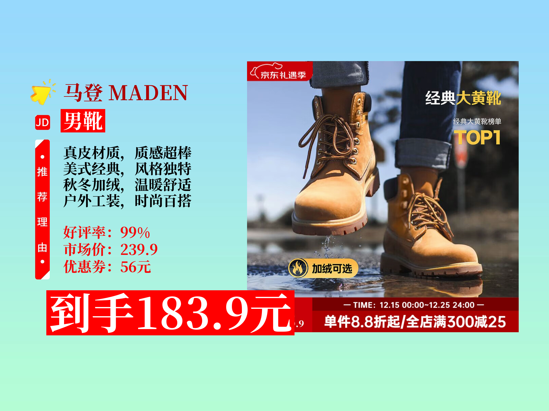 ![]() ![]() 【男靴推荐】秋冬必备男靴怎么挑?183.9元拿下马登男士马丁靴,美式经典大黄靴,加绒保暖,户外休闲超有型! 月亮不营_业 发布时间2025/12/23 05:31:39 | 1 | 0 | 0 | 1 | 更多 |