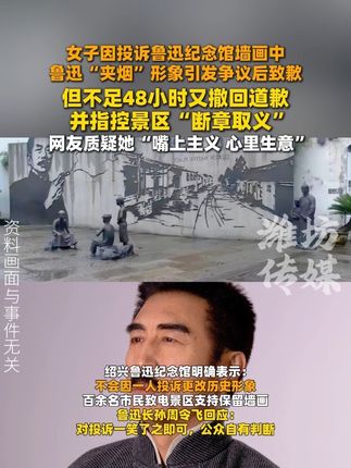 ![]() ![]() 2026年1月3日(报道)此前孙女士因投诉鲁迅纪念馆墙画中,鲁迅"夹烟"形象引发争议后公开致歉,但不足48小时又撤回道歉并指控景区"断章取义" 潍坊传媒 发布时间2026/01/03 14:35:46 | 0 | 0 | 2 | 19 | 更多 |