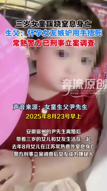 ![]() ![]() 安徽宿州的尹先生离婚后带着三岁的女儿和女友生活在江苏常熟。去年8月女儿窒息身亡,警方刑事立案调查后女友成为嫌疑人。1月4日,尹先生告诉奔流新闻记者,怀孕女友承认用手捂死了女儿,他还怀疑女友长期虐待造成女儿骨折、烫伤。近日,此案将移交检方审查起诉。