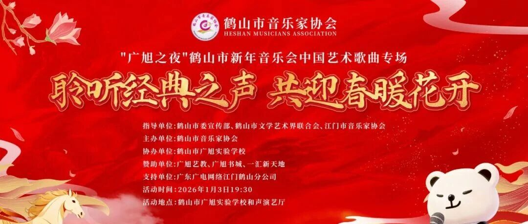 ![]() 经典之声唱响鹤山!鹤山市新年音乐会中国艺术歌曲专场圆满成功!精彩回顾→ 鹤山市音乐家协会 发布时间2026/01/05 01:42:03 | 1 | - | - | 9 | 更多 |