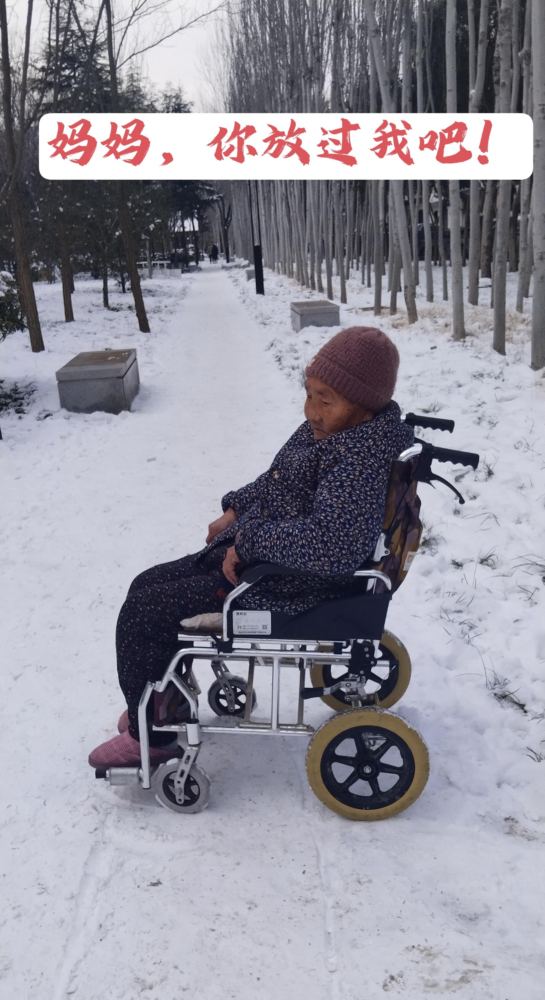 前天下了一场大雪,异常寒冷,道路上的冰雪还没融化。我怎么能推你出去呢?明年我也六十了,一旦滑倒骨折可能性也很大。你90岁的人了,偏要这时候出去,你这不是折磨儿子吗?我大声给她说了情况(她耳背)。我原以为她该安静了,不是,她坐在沙发上一声接一声哀叹,故意让我听见,让我不得安宁。又挪动到门口,把大门打开,让冷风吹进来,坐门口哀叹。